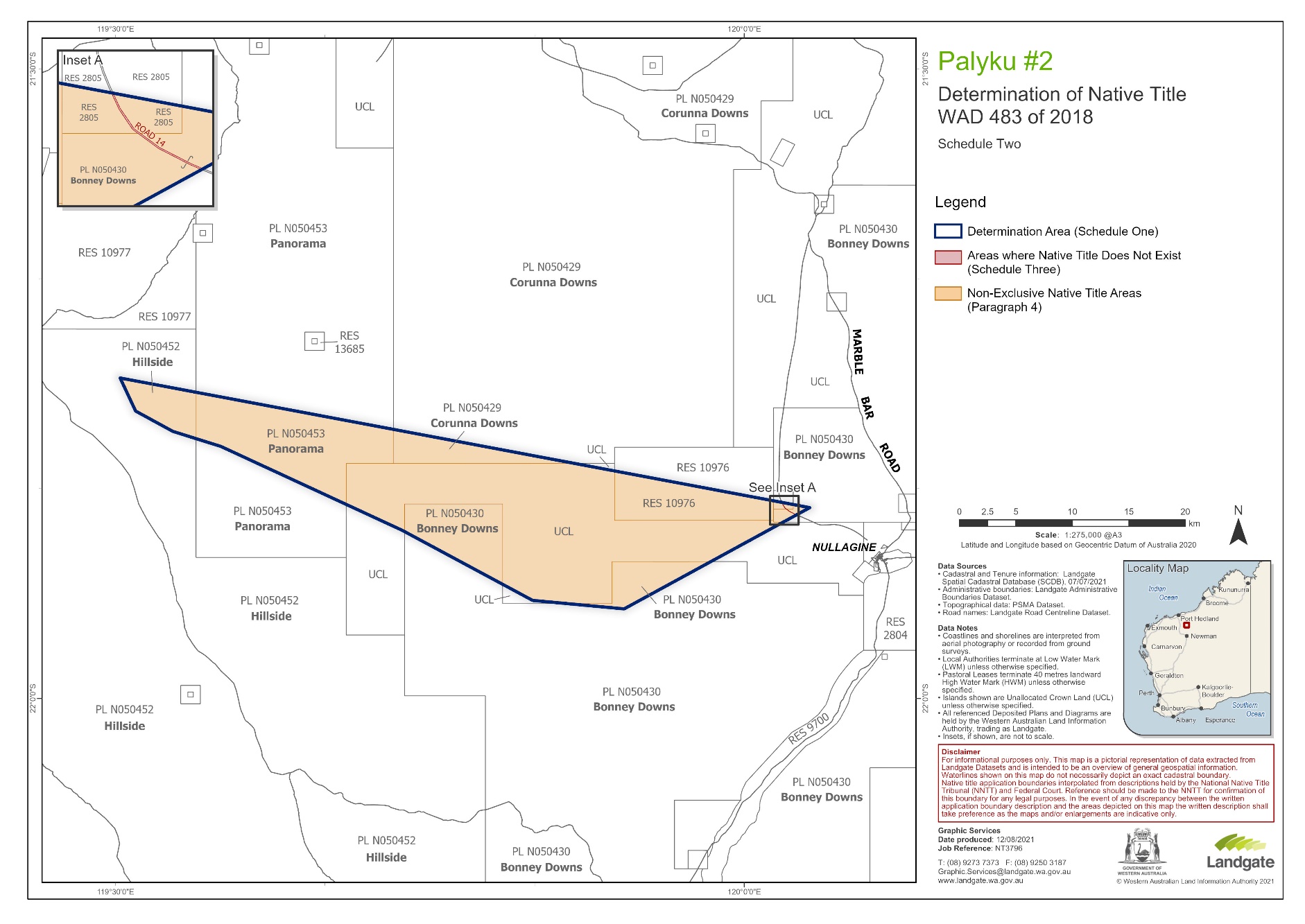 16 The external boundaries of the proposed Determination Area are described in Schedule One of the Determination and shown on the maps in Schedule Two of the Determination. The Determination Area comprises that portion of the Palyku #2 Application which is not overlapped by any other native title determination application. This area is located to the north of the Palyku #1 (Part A) Determination and to the south of the Nyamal #1 Application.