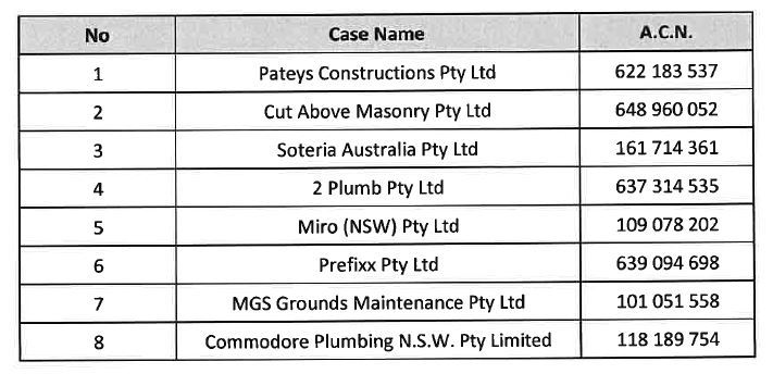 4 The effect of the orders sought is that the external administration of eight companies which remain the subject of the application will remain with the firm of Helm Advisory.
