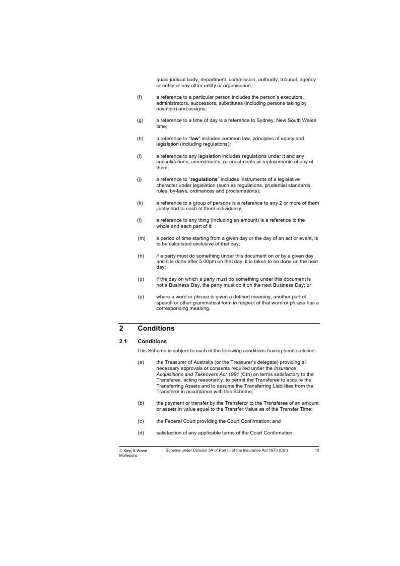 22 The Scheme is subject to several conditions. It suffices to observe that little more need be done by the applicants, save for acquiring the Court’s imprimatur under s 17F of the Act.
