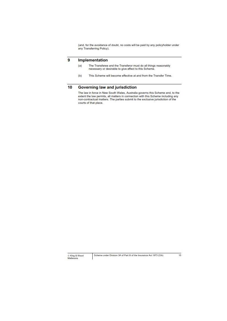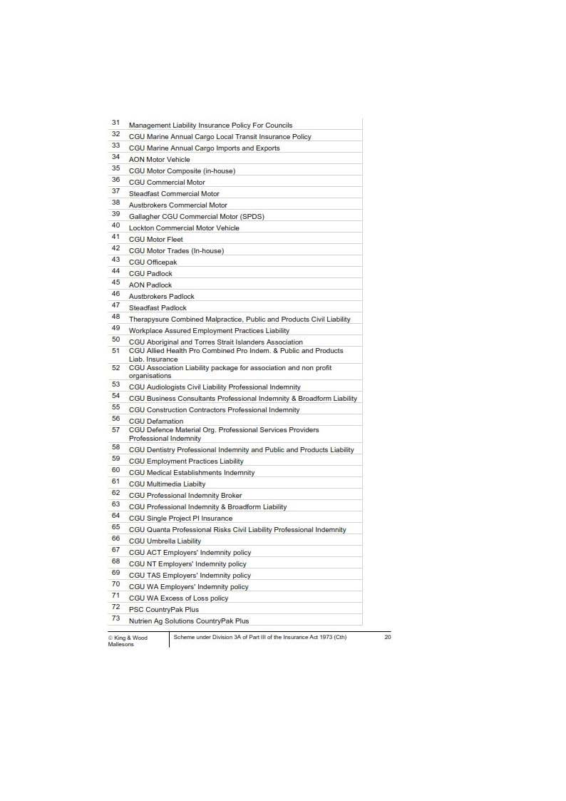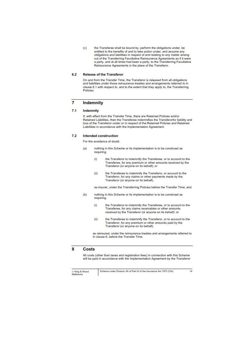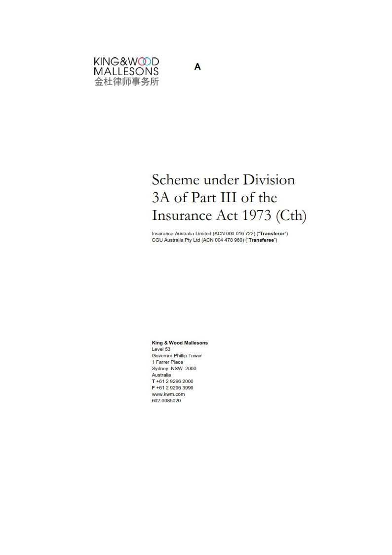 20 It can be accepted that the Scheme follows a form common amongst general insurance schemes that have been confirmed by the Court under Division 3A of Part III of the Act.