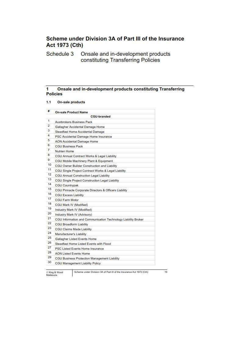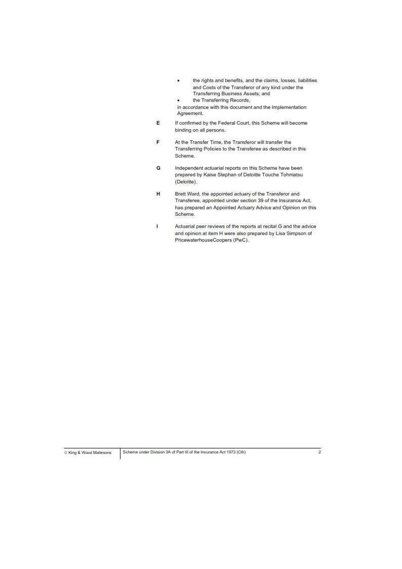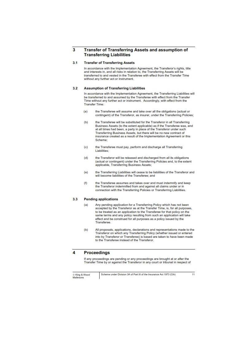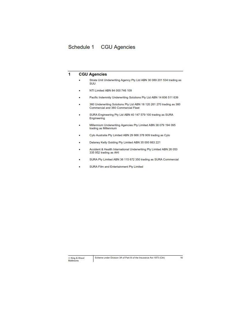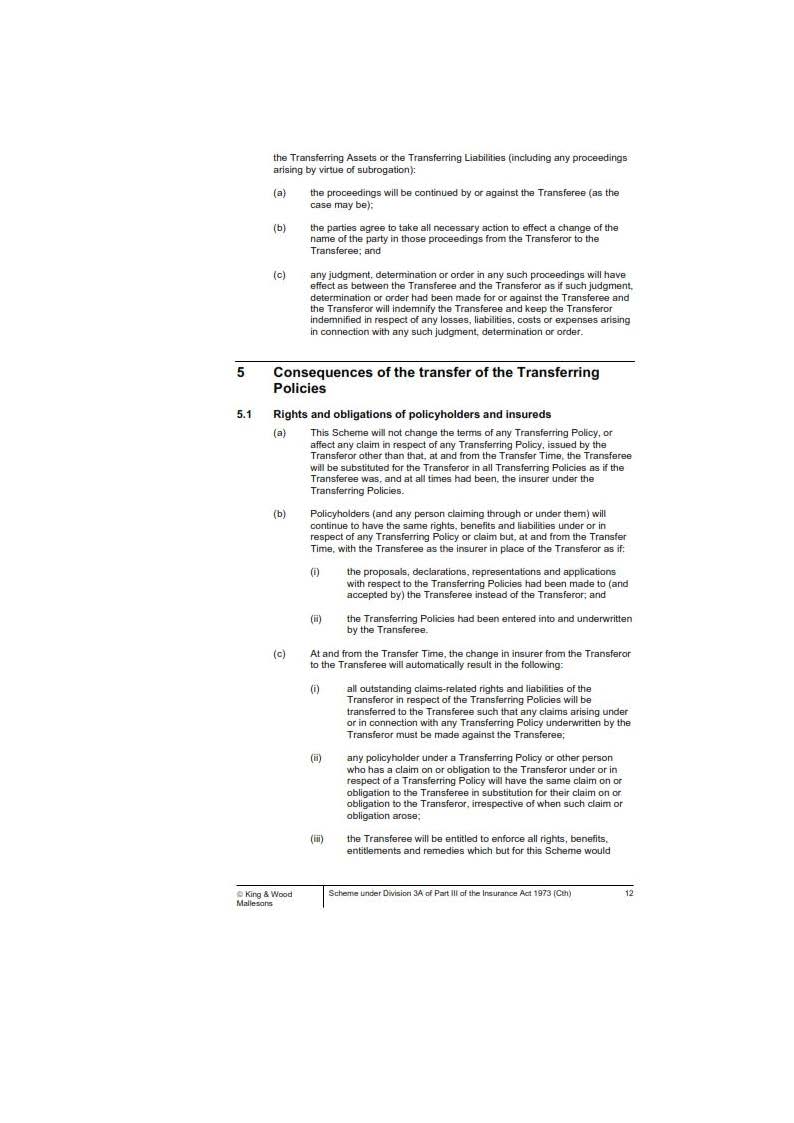 20 It can be accepted that the Scheme follows a form common amongst general insurance schemes that have been confirmed by the Court under Division 3A of Part III of the Act.