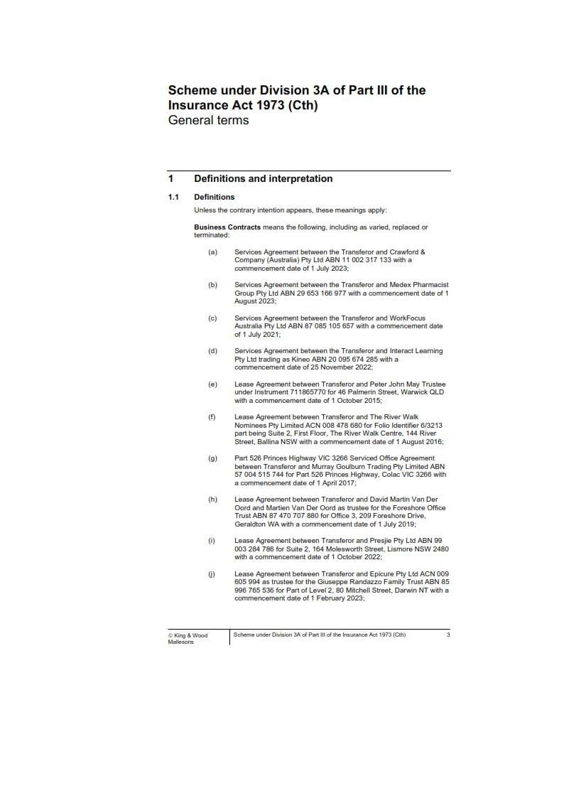 47 On 13 June 2025, APRA formally approved (a) the Scheme Summary; (b) a notice of intention; (c) the newspapers in which such notice of intention was to be published; and (d) the locations for public inspection of the Scheme in each State and Territory.