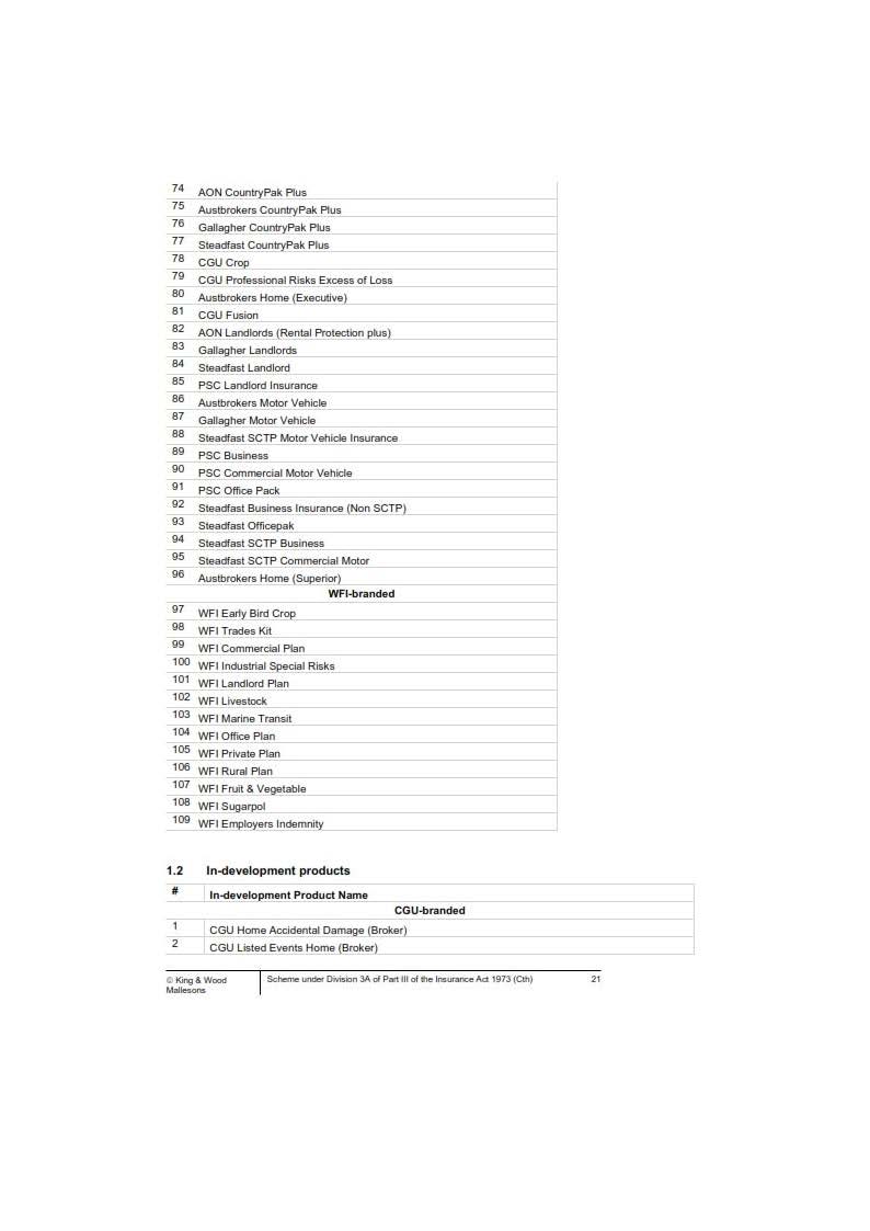13 IIA deals predominantly in commercial lines general insurance products which are provided to customers typically via a network of intermediaries. The Transferring Business is part of IIA and involves general insurance products that are provided to businesses and individuals through intermediaries under the CGU and WFI brands. IIA commercial products include “short tail” (such as business packages, commercial property, farm and crop, construction and engineering, motorcycle, commercial motor and motor fleet) and “long tail” insurance (such as workers’ compensation, professional indemnity, directors & officers and public and products liability).