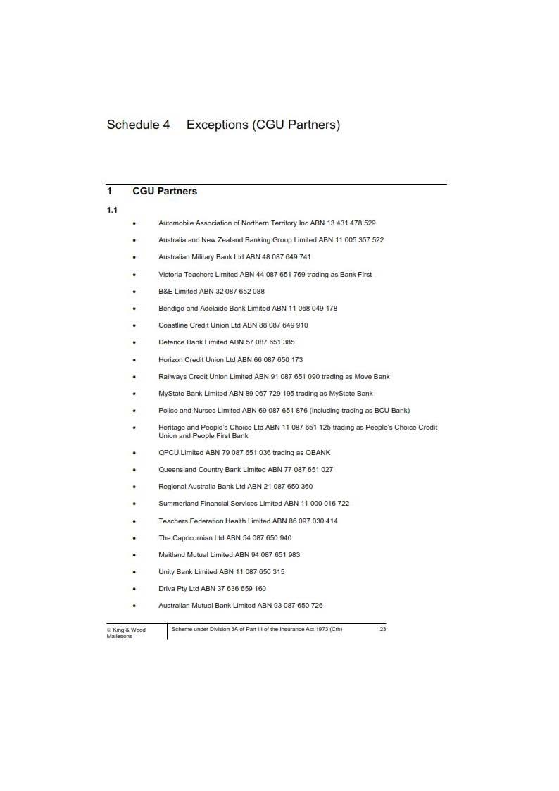 INSURANCE AUSTRALIA LIMITED ABN 11 000 016 722, AFSL 227681 First Applicant CGU AUSTRALIA PTY LTD ABN 62 004 478 960 Second Applicant |
