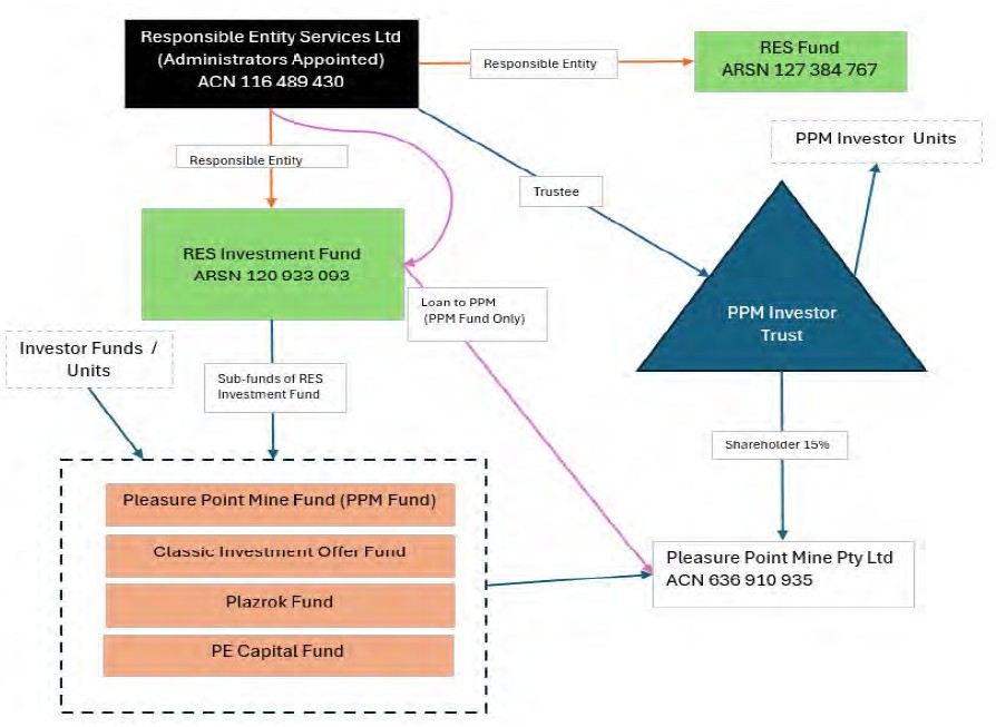 16 RES is the responsible entity for two funds, being the RES Fund which is dormant with no active investments and the RES Investment Fund, the latter of which has four sub funds being the Pleasure Point Mine Fund (PPM Fund), the Classic Offer Investment Fund, the Plazrok Investment Fund and the PE Capital Investment Fund. There are 325 investors in the PPM Fund.